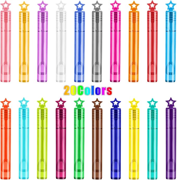 - Pack of 200 mini bubble wands with star handle design in 20 bright colors.