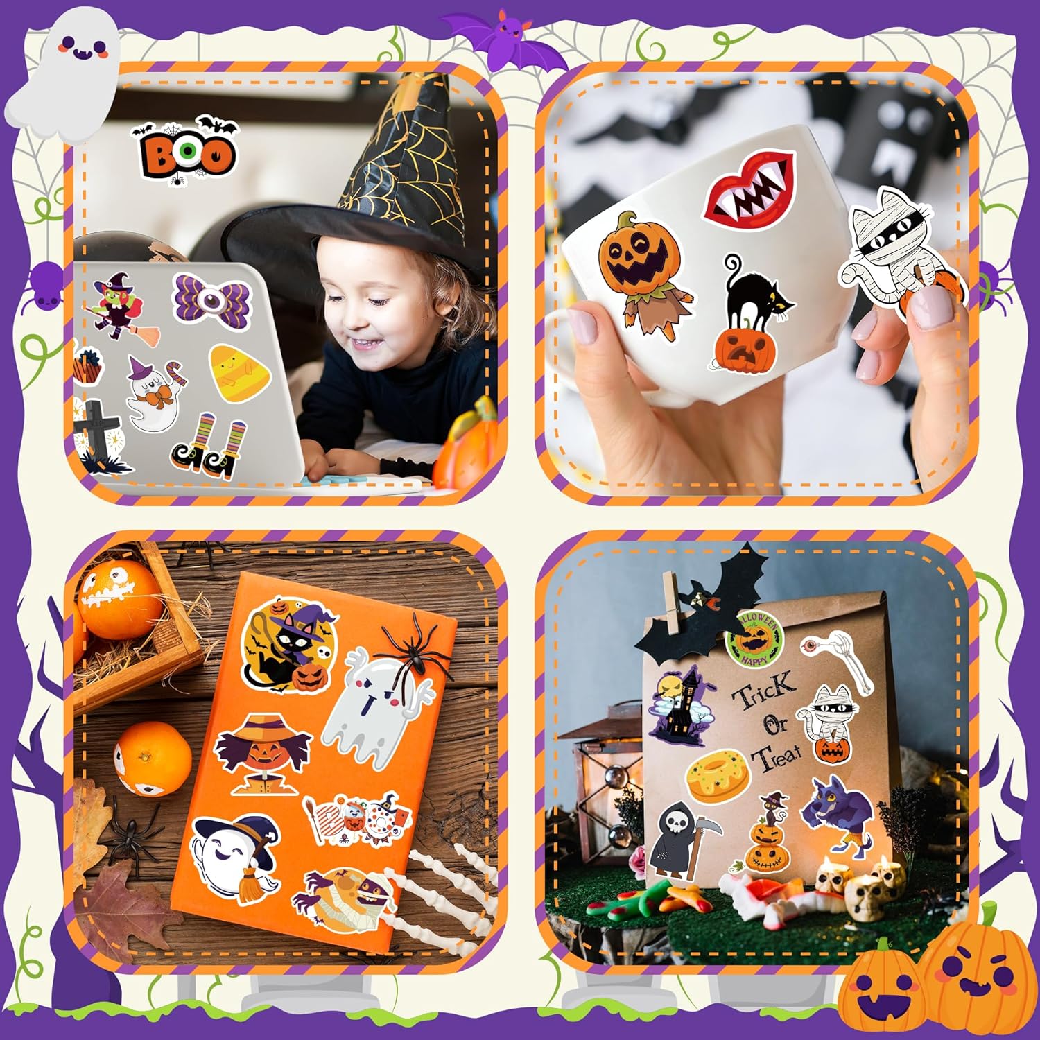 Kids love decorating with OHOME Halloween Stickers. Each pack has 100 fun designs with pumpkins, ghosts, bats, and witches. They look bright and colourful on notebooks, cards or tick or treat bags.  Perfect for decorating cards, party invitations, scrapbooks and more  these stickers offer endless possibilities to make your Halloween celebrations truly Halloween treats non candy.Crafted from high-quality materials, our Halloween treats are safe for both kids and adults. Non-toxic and easy to peel.